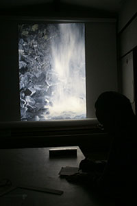 7月12日 昔のゼミメンバーが久しぶりにきてくれて4人でゼミでした。香港で撮影した強烈な赤のイメージの作品はグループ展出品作