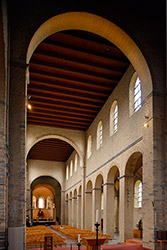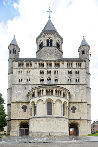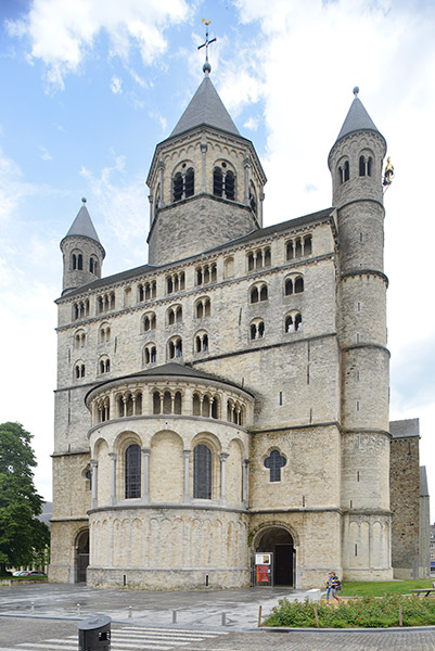 サント・ジェルトリュード修道院聖堂(Eglise Collegiale Sainte-Gertrude de Nivelles)はベルギー ワロン地方 ブラバン・ワロン州 ニヴェール市の中央にあります。フランドルのモザン美術とオットー朝建築様式の典型とされています。1046年、神聖ローマ帝国皇帝ハインリヒ三世によって建てられました。1940年にドイツ軍の爆撃によって破壊されましたが、1970〜1980にかけて再建されました。その時西正面の塔は爆撃前のゴシック様式の尖塔から、八角形の後期ロマネスク様式の塔に復元されました。