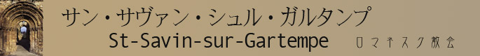 | フランス ポワトゥー地方ヴィエンヌ県の人口1000人程の街サン・サヴァン・シュル・ガルタンプにロマネスク絵画で名高い修道院附属教会がある 5c中頃ガルタンプ川の堤でで殉教したマケドニア出身のサバンとシプリャンの兄弟は3本の糸杉山に埋葬された。9世紀始めにその近くに最初の修道院がベネディクト会によって建てられた。878年のノルマン人の略奪で途絶えていたが11cになり再建され、同時にフレスコ画も描れたと考えられている。教会堂は長さ 76m、トランセプト(交差部)の幅31m、塔の高さは77mある。 サンサバン修道院付属教会は身廊と側廊の天井の高さが同じ広間式又は等高式といわれる タイプで、ロマネスクとしては非常に明るい印象を受ける。明快でシンプルな空間を感じる。 |