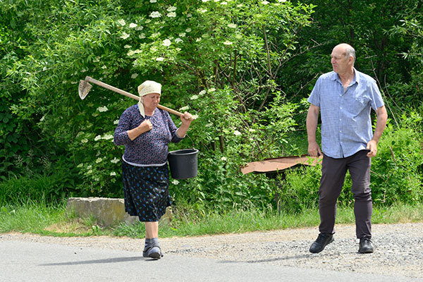 2-1 村に入ったが教会が見つからずガイドのジョルジェさんが女性に道を尋ねる