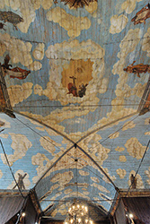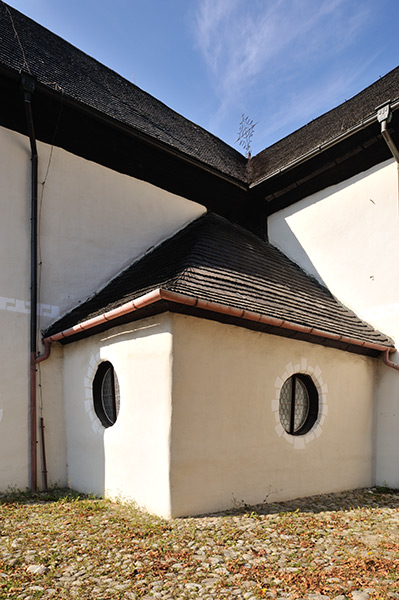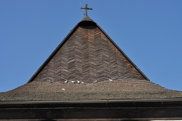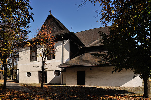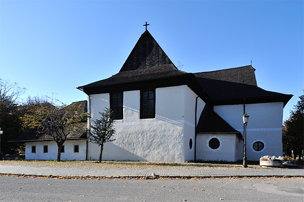 そこに建つ福音派(プロテスタント)教会 Kostol Najsvätejšej Trojice 聖三位一体教会は1717年に建てられた。当時スロバキアはオーストリアのハプスブルク君主国の支配下にあり、1648年のウェストファーレン条約によるプロテスタントの権利獲得は1681年のショプロン議会でのカソリックの反撃により制約されることになった。その協約内容は福音派の教会は道路に直接接してはならない、村落の境界に建てる、釘を含め金属や石を使わない、塔を建ててはならない、建設は1年以内に終える等厳しい物だった。その規制のもとで出来た5つの福音派の教会を協約教会(Articular church) と呼び、Kežmarokの教会はその一つで世界遺産に指定されている。規制により当時の市街地の外に建てられている。