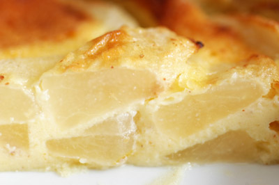 お客さんが来るのでクラフティを焼くことにしました。初めは洋梨をと思ったのですが、日本梨のサンセイキという品種を初めて買いました。スーパーで1個¥200、無袋栽培の二十世紀梨だそうです。酸味のある爽やかな味の青梨でした。