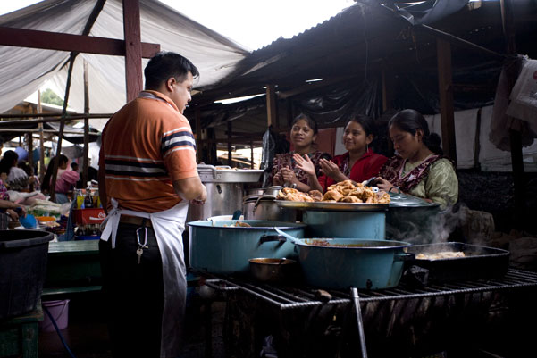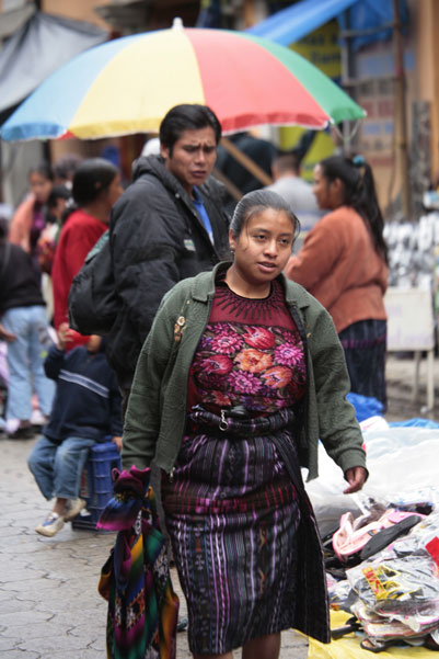 マヤ系の人の多い町チチカステナンゴは週2日市が立ちたくさんの人でにぎわいます。