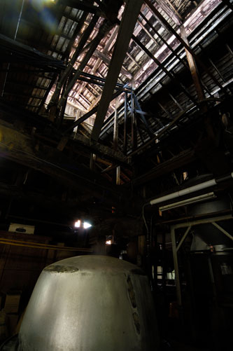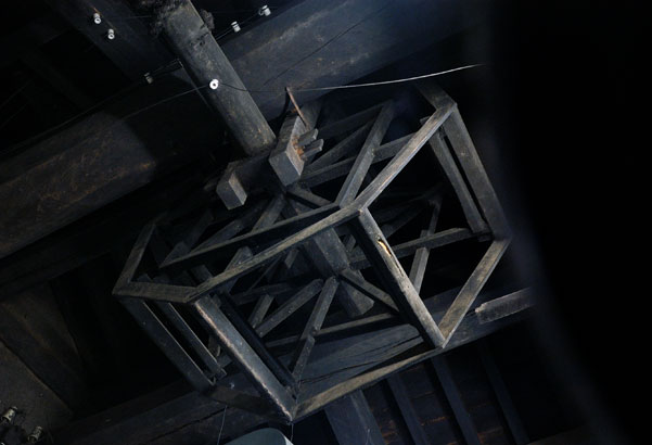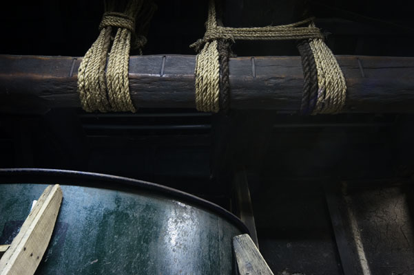 動力以前、酒を絞るために使った太い木が天井から吊るしてある