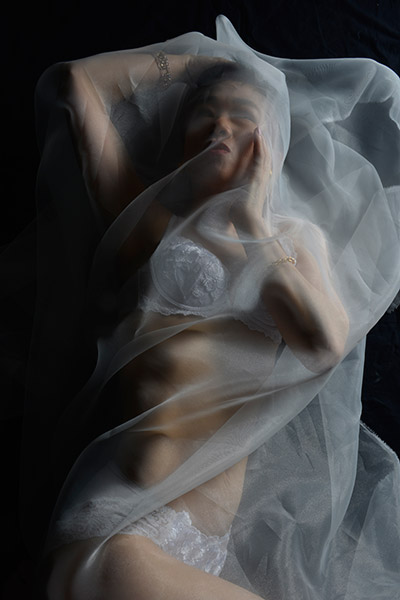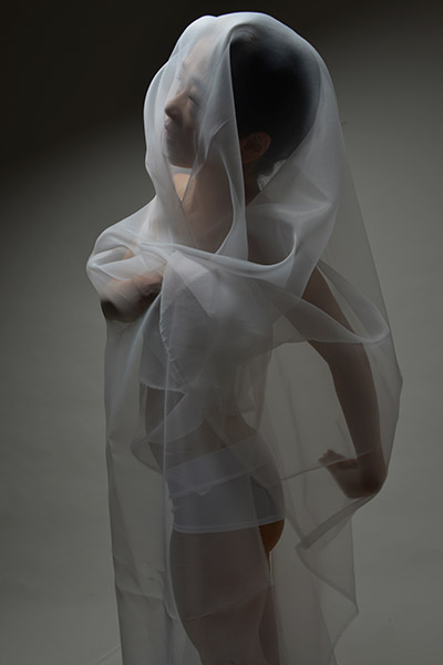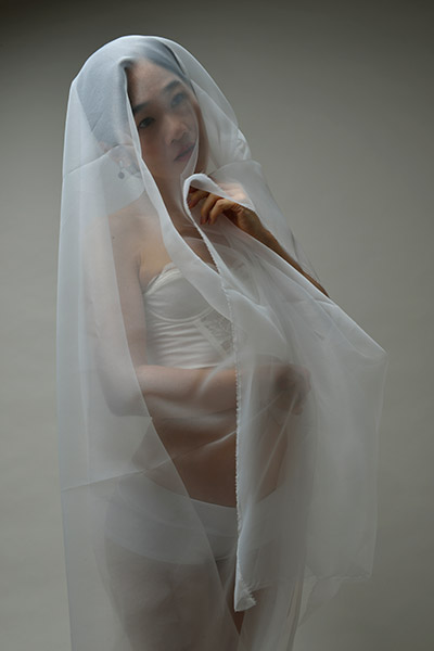 Mei under a white tulle