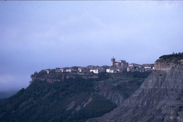 上の写真右上の村を望遠レンズで見る